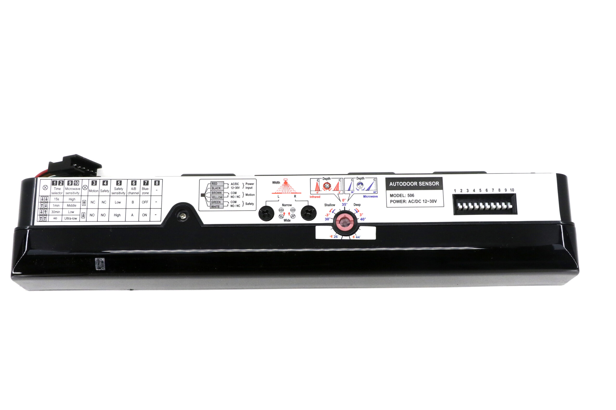 La detección de movimiento la realiza por microondas, dando la instrucción a la puerta que ejecute la apertura. La detección de presencia la realiza por barrido de rayos infrarrojos, dando la instrucción a la puerta que es seguro o no ejecutar el cierre.
